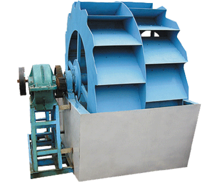 洗砂機工作時,電機通過三角帶、減速機、齒輪減速后帶動葉輪緩慢轉(zhuǎn)動,砂石有給料槽進入洗槽中,在葉輪的帶動下翻滾,并互相研磨,除去覆蓋砂石表 面的雜質(zhì),同時破壞包覆砂粒的水汽層,以利于脫水;同時加水,形成強大水流,及時將雜質(zhì)及比重小的異物帶走,并從溢出口洗槽排出,完成清洗作用。干凈的砂 石由葉片帶走,最后砂石從旋轉(zhuǎn)的葉輪倒入出料槽,完成砂石的清洗作用。